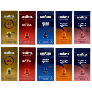Zestaw zawiera 10 opakowań po 10 kapsułek (łącznie 100 sztuk), obejmujących najbardziej lubiane linie Lavazzy: od klasycznej Qualità Rossa, przez elegancką Qualità Oro, po wyraziste i kremowe serie Crema e Gusto – w trzech wariantach: Classico, Forte i Dolce. To idealny wybór dla tych, którzy lubią różnorodność – każdego dnia możesz sięgnąć po inną intensywność i aromat.