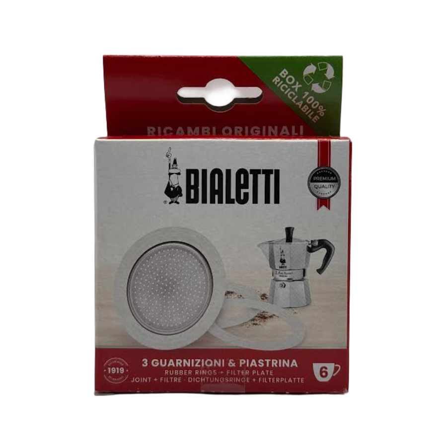 Uszczelki Bialetti do kawiarek aluminiowych to oryginalny zestaw akcesoriów przeznaczony do modeli aluminiowych kawiarek Bialetti o pojemności 6 filiżanek. Regularna wymiana uszczelek zapewnia prawidłową szczelność kawiarki oraz utrzymanie najwyższej jakości przygotowywanej kawy. Dzięki oryginalnym częściom zamiennym możesz cieszyć się doskonałym espresso w stylu włoskim przez długie lata.